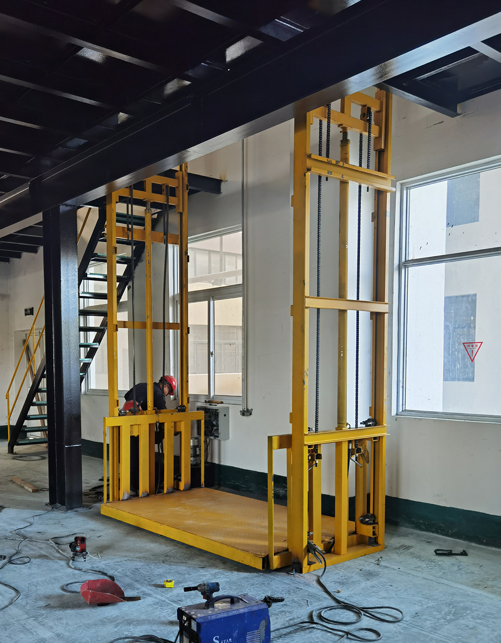 升(shēng)降貨梯安(ān)裝現場